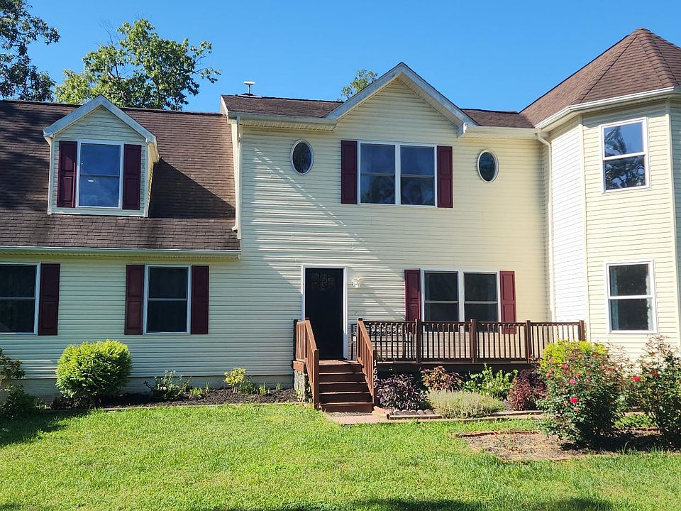 This exquisite Colonial-style residence, built in 2008, offers a harmonious blend of elegance and comfort, perfect for those seeking a refined lifestyle. Spanning 3,720 square feet, this home features four spacious bedrooms and two and a half bathrooms, including a primary suite on the main level with a soaking tub and walk-in closet, ensuring a serene retreat. Step inside to discover a warm and inviting interior adorned with rich hardwood floors and plush carpeting. The kitchen, equipped with stainless steel appliances, a built-in microwave, and an expansive island, flows seamlessly into the formal dining room, ideal for entertaining. A cozy breakfast area invites casual gatherings, while the main floor laundry adds convenience to daily living. The recently replaced HVAC system will keep you comfortable year round. The exterior boasts a charming deck overlooking a partly wooded lot, providing a tranquil space to unwind amidst nature. The property is thoughtfully landscaped and includes 10 Fruit trees (3 Cherry, 2 Peach, 4 Apple, and 1 plum). A gravel driveway leads you to the home accommodating up to four vehicles, and includes an outbuilding for additional storage. Nestled against a backdrop of lush trees, this home offers a peaceful view that enhances the sense of privacy and tranquility. With its combination of high-end features and an exclusive lifestyle, this property is a true sanctuary, inviting you to create lasting memories in a space that feels like home.