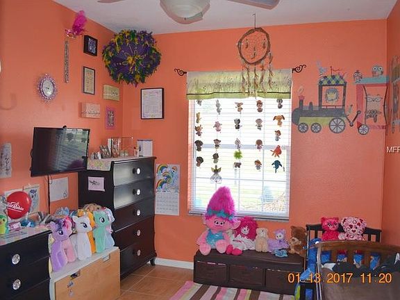 This Charming 4 bedroom 2 bath Taylor Morrison home sits on a large corner lot in Kensington Manor. As you drive up to the home you notice the beautiful landscaping and stunning exterior brick d??cor on the home. Walking into the home you enter a large great room with high ceilings, tile flooring and decorative columns. To the right of the great room is your bedrooms with a full-size bathroom. The bedrooms are large and spacious and plenty of closet space. The flooring is all tile and you will love the large windows that gives you natural lighting. Walking pass the great room you will enter a large open kitchen equipped with state of the art appliances, high end cabinetry, a kitchen island, and plenty of counter space. The kitchen flows into large dining room area leading out into the porch area. Enjoy your fenced in backyard for privacy. The master bedroom is large and spacious and features tile flooring and is located pass the great room. The master bathroom offers a large walk in closet, dual sink vanity, garden tub and separate shower. Perfect location in the well-maintained neighborhood of Kensington Manor with easy access to major roads, shopping, schools , parks, and community pool with park area.