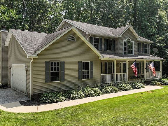 SECLUDED 4-Bedroom, 2.5-Bath Home on 4 Private Acres! Tucked away on a beautifully wooded lot with a generous setback from the road, this home offers the perfect blend of privacy and space. Step inside to a welcoming foyer that opens to a versatile bonus room with French doors perfect for a home office, playroom, or fitness area. The main level offers a seamless flow between the living room, spacious formal dining room and family room with a wood burning fireplace. The spacious kitchen is ideal for entertaining, with easy access to a mudroom and convenient first-floor laundry. Upstairs, the primary suite serves as a private retreat with its own en-suite bath, while three additional bedrooms and a full bath provide plenty of space for family, guests, or flex space. The poured concrete-walled basement with extra ceiling height is a blank canvas, offering endless opportunities for your customization. Enjoy morning coffee and host gatherings on the expansive private deck with built in benches and planters. Whether you're dreaming of cozy bonfires, a peaceful private retreat, or simply private space to roam, this is your chance to create the lifestyle you've always imagined. This home has it all - space, charm, and a setting that feels like a private nature preserve. Schedule your showing today!