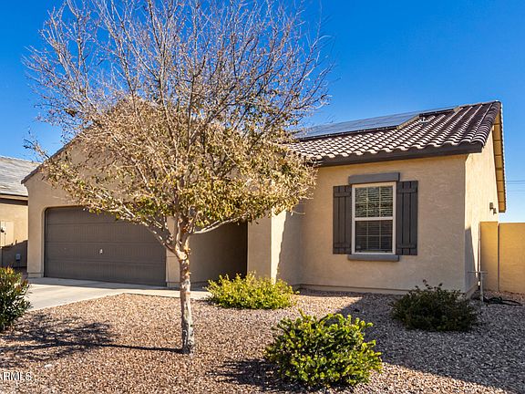 PREMIUM large lot, one of the biggest in the neighborhood! AND Owned Solar, low electricity! This home is tucked away towards the back of the neighborhood, no homes behind offering views for miles! This unique community offers a rural ranch character featuring parks, sidewalks, playgrounds, greenbelts, picnic areas and lakes! The kitchen features SS appliances, granite countertops, large island w/ RO system, 36'' Espresso maple cabinets w/ hardware. Both bathrooms feature granite countertops with rectangular undermount sinks. Throughout the home you find 2'' faux wood blinds, beautiful flooring and so much more!