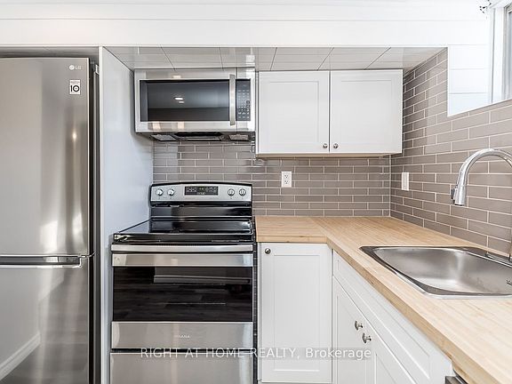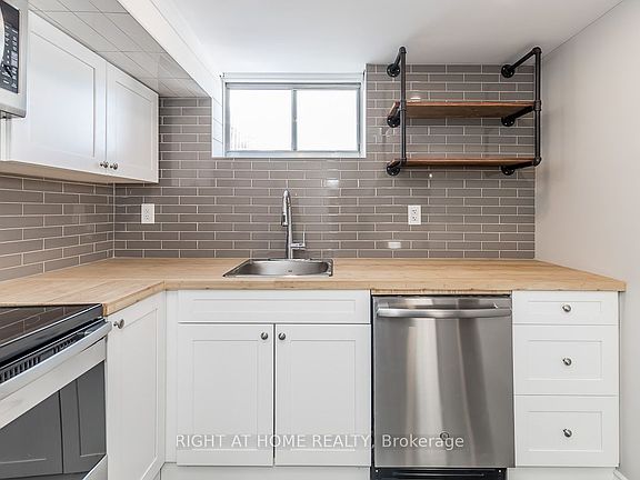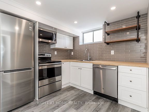 Lovely, and sunny 1 bedroom basement apartment, beautifully updated! Laminate flooring throughout, 3 pc bathroom with separate bedroom and ensuite laundry. Tons of storage space in crawl space! Use of side yard. 1 parking spot included! Photos from when property was vacant. Minutes to Hwy 400, transit, shopping, schools, parks!