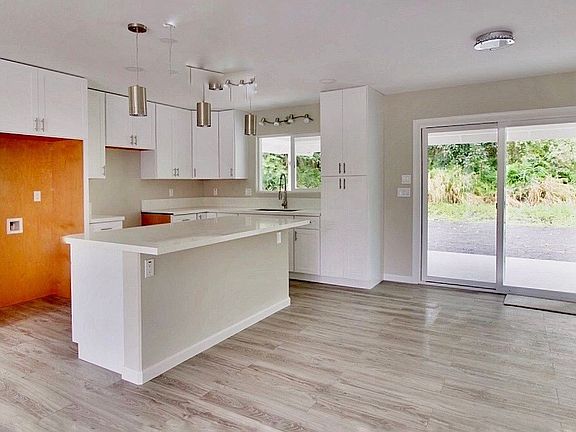 Great location in Keaau! ON COUNTY WATER! Newly-built home in 2020. Only 1 mile from Keaau Shopping Center and 10 minutes from Hilo, where you can find grocery, restaurants, medical facilities. parks, and schools. Seller is working on the finishing touches which includes a paved driveway and stainless steel appliances to be included with the new home. Hard to list the many features of this brand new above-average sized home: * Inverted/Recessed living room ceiling with mood lighting. * French Glass Front Doors with custom tropical Etch film. * Porcelain tile in master bath including a Basco frameless Glass Shower Door, brushed nickel waterfall faucets and 6000k lighted vanity mirrors. * Jacuzzi Bath Tub in master bathroom * Remote Ceiling Fans in all the rooms * Seller will be including Stainless Steel Appliances ( refrigerator, 5-burner gas range, washer and dryer) * Quartz Kitchen Countertop and Pendant Lighting over kitchen island * Commercial pull-out Kitchen Faucet * Custom-installed Closets throughout * On-Demand Water Heater * Paved Driveway Live minutes to town. Avoid the long commute. Enjoy a brand-new house with 4-bedrooms...plenty of room for visiting family and friends. On County Water. No hassle with rainwater catchment maintenance. Great price in a sought-after location!