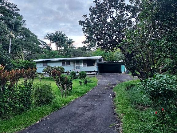 A CHARMING COUNTRY HOME FIXER UPPER WITH 3 BEDROOMS 1.5 BATH ATTACHED CARPORT, PATIO AND LAUNDRY ROOM. SPACIOUS LIVING ROOM WITH REDWOOD WALLS, CARPET AND A LARGE PICTURE WINDOW INVITING IN THE WARM SUNLIGHT. REDWOOD WALLS AND OAK FLOORING THROUGHOUT THE ENTIRE HOME. SMALL KITCHEN IN NEED OF MUCH REPAIR. NEEDS NEW CABINETS, SINK, COUNTERS AND FLOORING WOULD TRANSFORM THE KITCHEN. ROOF ON THE MAIN HOUSE WAS REPLACED 3 YEARS AGO BUT THERE IS CEILING DAMAGE IN SEVERAL BEDROOMS. CARPORT & PATIO ROOF NEEDS TO BE REPLACED. NICE LAUNDRY ROOM AND A STORAGE ROOM AT THE REAR OF THE CARPORT. SEVERAL FRUIT BEARING TREES AND A HUGE MAGNOLIA TREE IN THE FRONT YARD. PLENTY OF GARDEN SPACE AT THE BACK YARD. APPROXIMATE 15 MINUTES TO THE KEAAU SHOPPING CENTER.