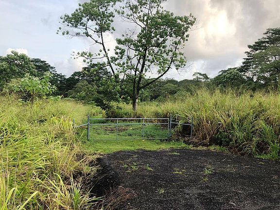10 acres, right on Volcano Rd (Hwy 11). The section closest to the highway is a steep grade. The center, cleared area is fairly level. From there, it continues downward at a gentle slope, making for good drainage. A gate installed. The driveway from the highway to the gate is asphalt pavement.