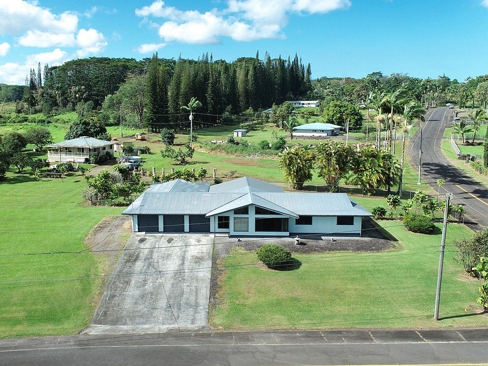 Perched on 1.019 acres on a corner lot, this large custom 4-bedroom, 3-bath home rests in desirable Kea'au Agricultural Lots Subdivision. The parcel has been fully cleared to utilize the entire space of the lot. The home boasts over 3600 sqft under roof including a large covered lanai. As you enter the home you are greeted by the spacious living and dining area where large windows and vaulted open beam ceilings bring light and air. The 30x70 lanai makes a great outdoor space to entertain and relax and enjoy the peaceful landscape and neighborhood.