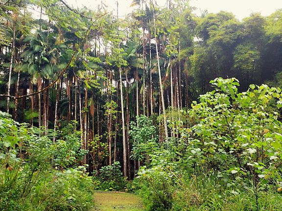 Clusters of golden bambooFragrant yellow gingerKupu kupu fernsGorgeous native ohia treesTowering alexandria palm treesNice grassy meadow