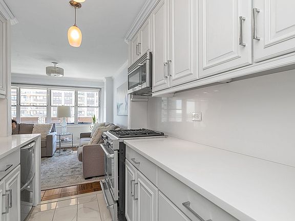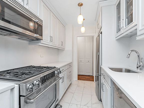 Welcome to your designer dream home at Americana at the Towers At Waters Edge in beautiful Bayside. This stunning one-bedroom apartment boasts breathtaking views of the bay from your own private terrace, offering the perfect place to relax and unwind. Step inside and be greeted by hardwood floors throughout, creating a warm and inviting atmosphere. The custom galley kitchen is a chef's dream, featuring a top-of-the-line Jenn Air stove, Fisher & Paykel dishwasher and refrigerator, and gorgeous quartz countertops. The spa-like marble bath is perfect for relaxing after a long day, while custom closets provide ample storage space for all your belongings. With resort-style living at your fingertips, including a 24-hour doorman, gym, on-site salon, cafe convenience store, outdoor heated pool, tennis and basketball courts, garage, and outdoor parking, you'll never want to leave! Located in the heart of Bayside, you're just minutes away from Bay Terrace Shopping Center, top-rated restaurants, Little Bay Park, and easy access to local and express buses to the LIRR and NYC.