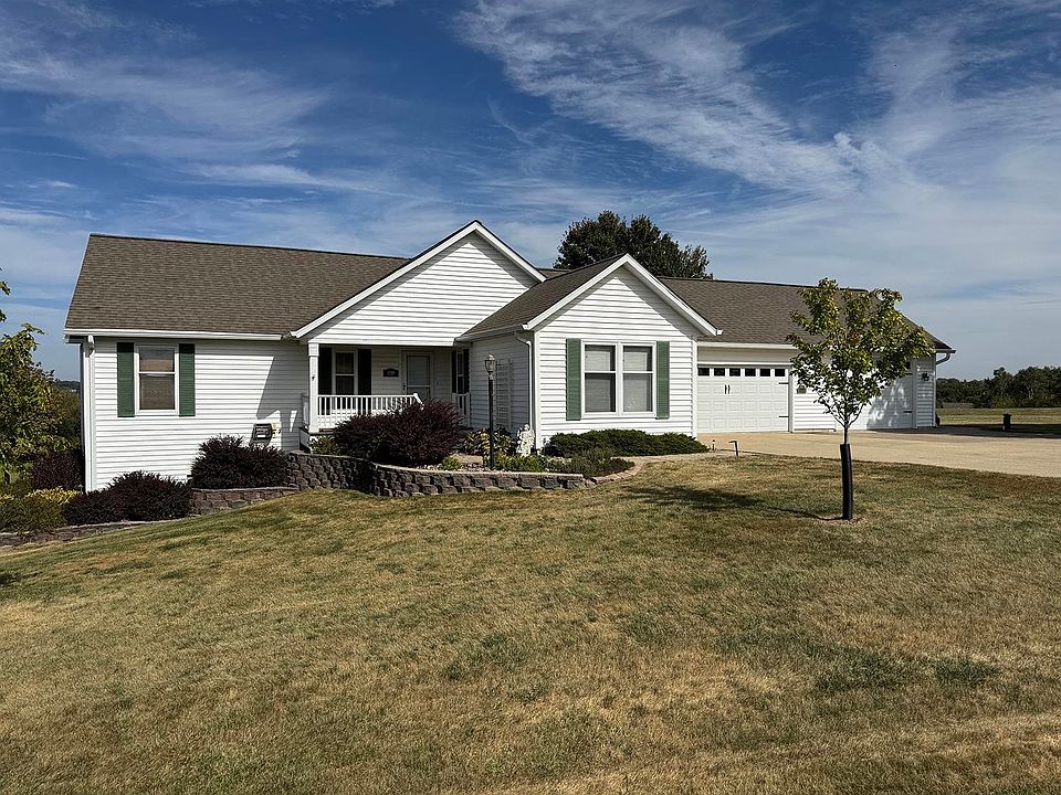Experience the charm of this lovely Lake Carroll ranch home, thoughtfully designed for comfort and style. Situated on a beautifully landscaped 0.53-acre corner lot, this residence features 4 bedrooms, 3 full bathrooms, and an oversized 3-stall heated garage with workshop cabinets included. The open-concept great room combines the living, dining, and kitchen areas with cathedral ceilings and gleaming hardwood floors. A recently added gas fireplace, framed with stacked stone, a live-edge hearth, and custom built-in bookcases, creates a striking focal point for the living space. The kitchen is as functional as it is inviting, offering ample cabinetry, solid-surface countertops, a pantry closet, and an eat-up breakfast bar along with space for a dining table. The sunroom provides a cozy retreat with its own gas fireplace, perfect for year-round enjoyment. The main-level primary suite features a walk-in shower, private toilet area, and a walk-in closet. The split floor plan ensures privacy, with guest bedrooms, a full bath, and a laundry room located on the opposite side of the home. The finished lower level is an entertainer’s dream, complete with two additional bedrooms, a full bathroom, a kitchenette/wet bar, and a spacious family room with a built-in entertainment center. The pool table and shuffleboard table are included, making this the perfect space for gatherings. Outdoor living is equally impressive, with a main-level deck featuring new railings, a concrete patio on the lower level, and a storage building for added convenience. Additional highlights include in-floor heat on the lower level powered by an on-demand water heater, reverse osmosis system, ultraviolet light, whole-house water filtration, and a professionally finished garage floor. This home blends warmth, functionality, and attention to detail—offering the ideal Lake Carroll retreat.