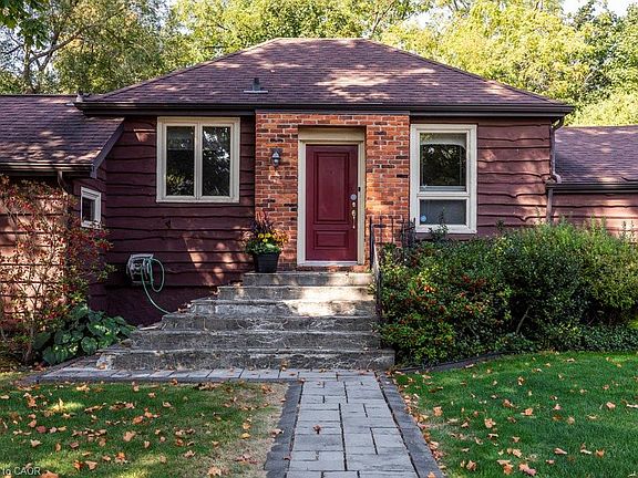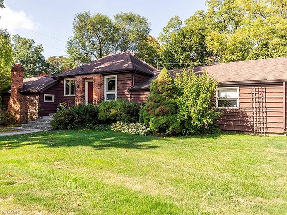 Very Desired neighbourhood! Wonderful Circa 1890 Dundas home with additions that make it unique & one of a kind. Loved by long term owners. An easy walk to Dundas Park, schools, churches & Downtown Dundas. Benefits of a Bungalow, but lots of living space. Front of home is on Parkside but the drive off Alma leads to the double carport & the side entrance. A Mudroom is perfect for bringing in your groceries. It also accesses the backyard, deck & fenced backyard with patio. Enjoy entertaining in the comfortable Dining room that is also accented with carpet & crown moulding. An updated 3 piece Bath & Laundry/Pantry are also on this level. Cozy kitchen with it's hickory cabinets, movable bottom cabinet & cork floors is off Dining room. Walk down a few steps to the Great room with vaulted ceiling, broadloom & a gas fireplace. Come back onto the main floor & go to the back of the home. Descend a few steps & there are 2 large oversized Bedrooms. Enjoy evening dinners on the deck or watch fireflies in the gardens & listen to the creek late at night. Lower level offers a Rec Room & built-in bookcases, Utility Room, a 2 pc Bath & lots of storage area. Doesn't this feel like home?? Walk to town, schools & Driving Park.