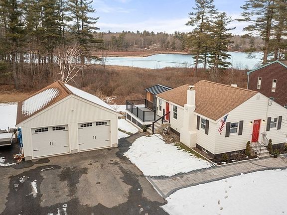 Welcome home! Beautiful lake Attitash living in desirable Merrimac neighborhood - 3 bed, 1.5 bath, detached two car garage, surrounded by peaceful landscape offering a special place to unwind.Oversized front entrance mudroom leading to the bright, newly remodeled kitchen with granite counter tops, stainless steel appliances, and dining area. Open concept layout flows into the cozy living area. Sliding glass doors lead to the enclosed 3 season porch housing a top-of-the-line hot tub with Bluetooth speakers. Relax while overlooking the lake in your private oasis.Lower level includes flex office space or bonus room. Walk-out, fully finished basement with bar, wood pellet stove, easy access to beautiful backyard, an entertainers dream.Additional storage space is included in upper level of the large two car garage. Won’t last! Lake living could be yours this year!