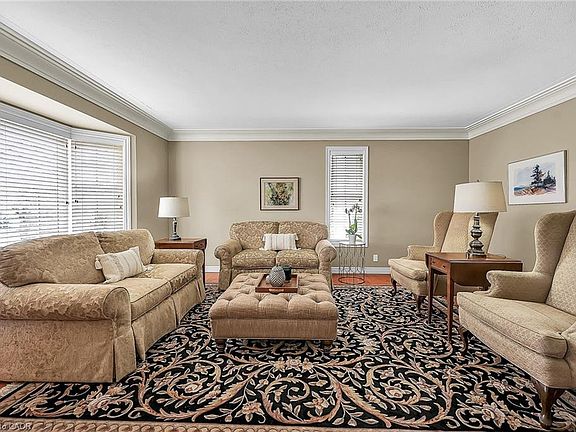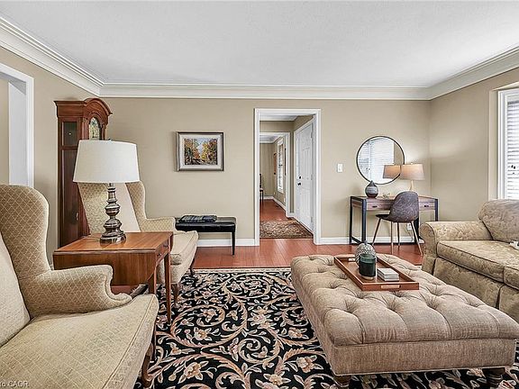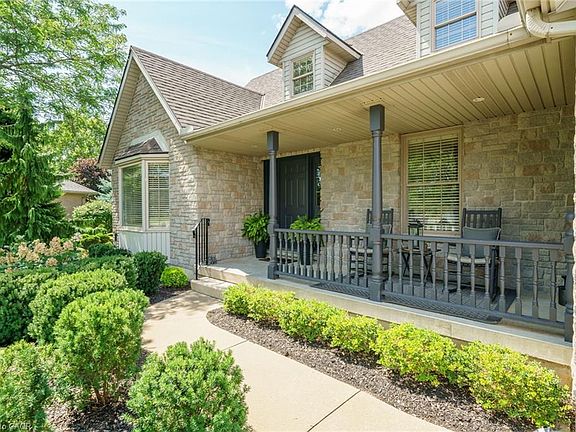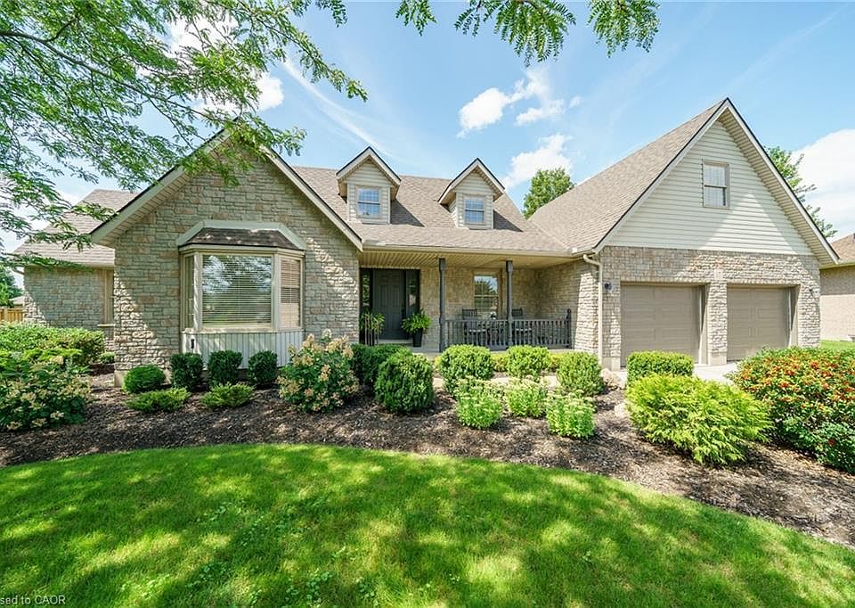 Experience lavish executive-style life-style in this prestigious Simcoe neighborhood enjoying close proximity to this popular Norfolk town's desired amenities incs Hospital, schools, churches, rec centers/pools, parks, Lynn walking/biking trail, shopping malls & downtown shops/eateries. Positioned majestically on 0.28 ac premium pie-shaped lot is 2000 custom "Kloet" built, original owner, brick/stone bungaloft introducing 2437sf of flawless living area, 1456sf finished basement, 707sf attached garage incs side door walk-out to velvet green lawn rear yard highlighted w/410sf concrete entertainment patio enhanced w/wood gazebo & privacy fence. Welcoming covered front porch provides entry to grand foyer leading past formal dining room & comfortable living room - continuing to updated kitchen-2021 sporting stylish white cabinetry, granite countertops, tile backsplash, designer peninsula & SS appliances -segues to adjacent family room boasting warm gas fireplace & rear yard patio walk-out. Roomy corridor leads past neatly hidden laundry station to impressive primary bedroom incs chicly renovated 4pc en-suite - completed w/3pc bath & direct garage entry. Gleaming hardwood floors & crown moulded ceilings compliment pristine interior w/distinguished flair. Solid wood staircase ascends to bright 2 bedroom & 3pc bath upper level ftrs classic dormers allowing natural light - plus- 2nd staircase accessing separate finished loft - ideal kids/teenage hang-out. Tastefully appointed lower level covers all the perks - from rec room, games room, fully equipped workshop, multiple storage rooms, utility rooms to spacious guest bedroom, modern 3pc bath & convenient garage staircase walk-up. Extras - roof shingles-2017, n/g furnace, AC, HRV, shared well (agreement in place) supplying full zoned irrigation-2023, brushed nickel door hardware, newer eaves w/gutter guards, oversized double driveway, California shutters & 2 insulated garage doors-2023. Taking “Immaculate” to the "Next Level!"