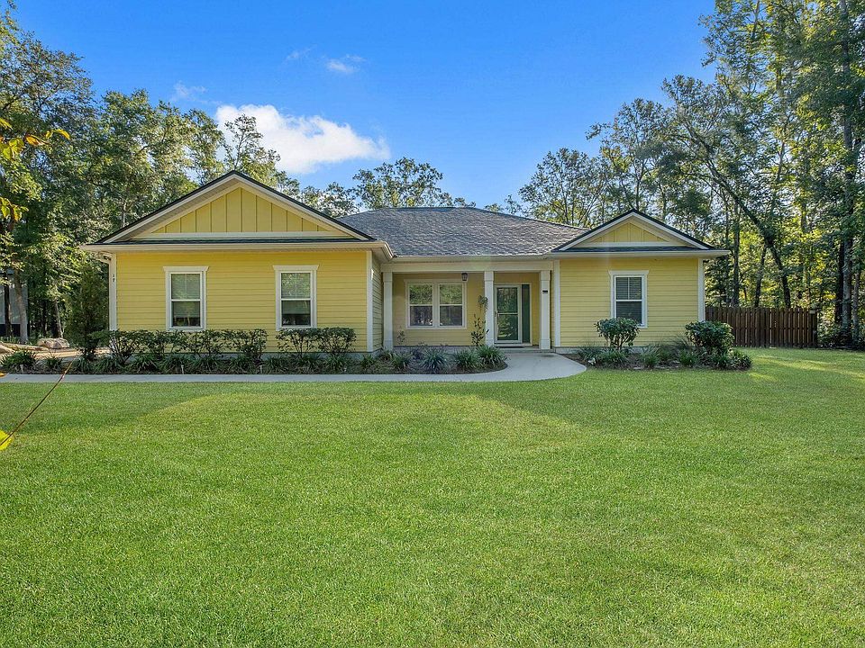Looking for a large fenced in backyard with raised vegetable beds and chicken coop? Check out this newer spacious home offering beauty, privacy and comfort. Ready to move in 3 bedroom/2 bath with additional office/bonus room on 2 acres located in Hidden Forest. Kitchen includes 2 different pantry options, cabinet drawer organizer upgrades, appliance package upgrade, dining nook and formal dining room. There is also a separate enclosed laundry room with added cabinets.  Master bedroom is on opposite side of house as other two bedrooms and extra bathroom. Other features include red oak hardwood floors throughout (no carpet!), lighting upgrade package, double car garage, walk in master closet, large tub, walk in shower, and screened in back porch. Quiet neighborhood next to walking trails, country living with easy access to town. Note: the roads leading to Hidden Forest will be repaved when county construction is completed. Construction will not extend to Hidden Forest.