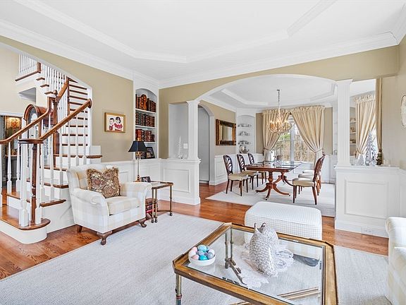 This 4-5 BR, 3.5BA, 5,523 sq ft colonial offers expert craftsmanship & a beautiful lot. Built in 2015 by a premier local builder, it's in a sought-after neighborhood & walkable to shops & restaurants. The chef's kitchen features a big island, custom cabinets, double oven, gas cooking & opens to a huge family room with a cathedral ceiling & impressive fireplace. A private office, dining room, half bath & living room complete the 1st floor. Upstairs, a luxurious primary suite offers a sitting area, separate office, laundry room, walk-in closet & a spa-like bath. 3 additional bedrooms & a full bath complete the 2nd floor. The lower level has 10 ft ceilings, fireplace, game room, gym, family room & full bath making it ideal for a 5th bedroom or in-law space if desired. The 2 walk-out entrances from the lower level, plus exterior stonework, stunning patio, lawn irrigation system and well for lawn maintenance, recently sealed driveway, & upgraded plantings make this a must see!
