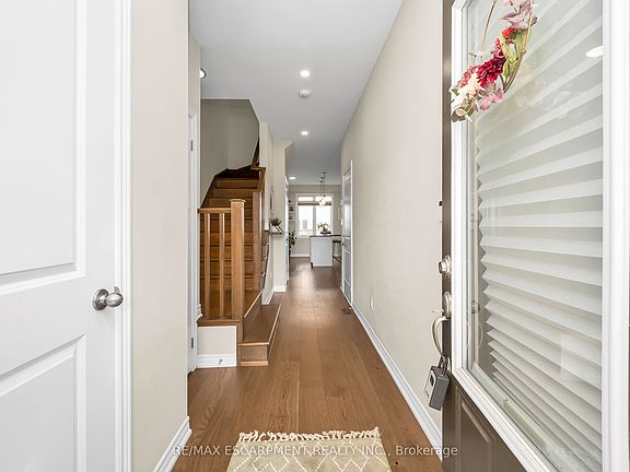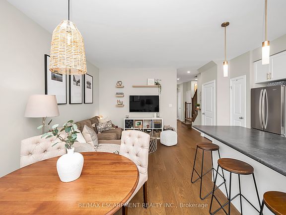 Tucked along the base of the Escarpment, this 3-bedroom, 3-bath townhouse in Winona offers modern living surrounded by nature. Only three years new with low condo fees, this home stands out with smart, stylish upgrades and a functional layout designed for everyday comfort.The main floor features hardwood flooring throughout and an open-concept kitchen, dining, and living area that flows seamlessly to the backyard (fencing can be extended to fully enclose yard). A convenient powder room and interior entry to the attached garage add to the practicality of the space.Upstairs, you'll find three generous bedrooms, two full bathrooms, and the convenience of second-floor laundry. The bright primary suite offers escarpment views through a large window, a walk-in closet, and a spacious ensuite bathroom with a spa-inspired shower upgraded with glass walls, a ceiling-mounted rainfall shower head, and modern fixtures.The full basement has been framed in and is ready for your customization.Located in a quiet, family-friendly community, this home is surrounded by the best of Winona: Winona Park and the Peach Festival just across the street, easy access to the Bruce Trail, Fifty Point Beach and Conservation Area, and nearby wine country. You'll love the balance of nature and convenience - with great schools, local shops, HSR transit steps away, quick QEW access, and a major shopping centre with every amenity you need.Stylish, functional, and ideally located - this Winona gem truly offers the best of all worlds.
