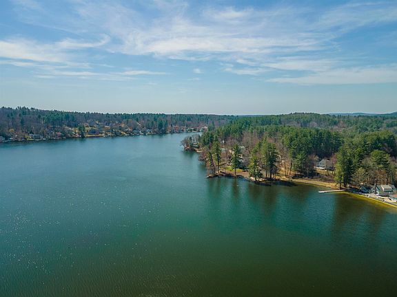 COBBET’S POND WATER VIEWS | This stunning ranch home resides on one of the most coveted bodies of water in Southern NH! This 3 bedroom, 2 bath has stunning views and water access! Enjoy swimming, fishing, boating, and an amazing community year-round. As soon as you enter the property, you have an oversized covered front porch deck great for entertaining. Through the entry you will find a connected family and kitchen area with a nice open feel and lots of windows to let you soak in those views! The large primary bedroom has its own ensuite bathroom with a gorgeous walk-in shower, updated tile and a modern glass front door. Two additional bedrooms and full bath in this home. There are washer/dryer hookups available and a side door that leads to the back of the property. The backyard includes 2 sheds for additional storage. Oversized driveway with parking to easily fit 3 cars. Updates include water heater, heating system, and bathroom tile. Tax card lists home as 2 bedrooms with a 2 bedroom septic.