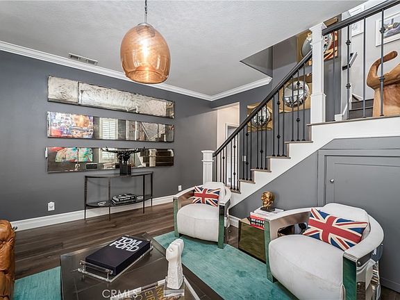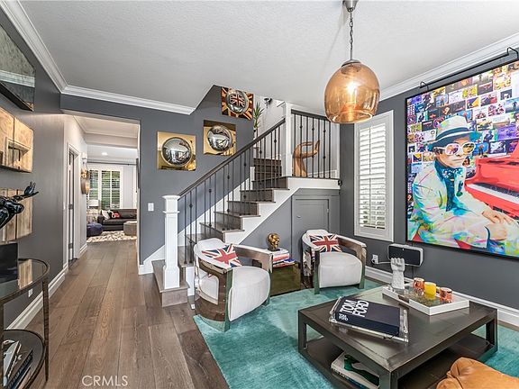 I give this listing my home of the year award. Ladera Ranch perfection. Two level easy living single family home with floorpan that makes sense. Nice size rooms, open concept and good flow. 2 car garage plus 2 car driveway, 4 bedrooms all upstairs (4th converted to an office for 2 or study/gaming room). Great interior location that is peaceful and on a loop where kids can play out front and in the yard. Immaculate condition and over the top remodeling inside and out. You'll be dazzled by the curb appeal and pretty landscape and elated when you open the front door to wide plank French Oak wood floors and more delighted as you walk through and are wowed everywhere you look, the garage with epoxy floor, cabinets and a workbench looks like you could eat off the floor. Don't hurry too fast to get the the backyard to see the fire pit, BBQ bar, pergola and wrap around tiled patio because you don't want to miss the island kitchen rivaling that of a custom home. Kitchen Aid commercial 6 burner range with double side by side ovens, vented range hood, Bosch dishwasher, Kitchen Aid built-in French door refrigerator, Kitchen Aid lower cabinet microwave, enormous breakfast bar island with waterfall quartz counter, wood and glass cabinetry with soft close features and custom backsplash. Family room has a fireplace with TV pre-wire above, surround sound speakers in the ceiling and is open to the yard, kitchen and dining room. Powder room has a poured concrete vanity, custom mirror wall and sconces. Gracious primary suite has built-in entertainment wall cabinets and shelves, dual sink vanity, separate soaking tub and walk in shower with new frameless glass enclosure, separate toilet room and organized walk-in closet. Upstairs laundry room, awesome office (possible 4th bedroom), 2 guest rooms and second bathroom with dual sink vanity and tub/shower. Too many custom details to list but the crown molding and plantation shutters shouldn't be missed. Enjoy all the amenities of Ladera Ranch with top rated schools within walking distance as well as parks, Pickleball, tennis, skate park, water park, pools, spas, dog park, sports courts, fields and everything you want to keep you active. Very reasonable HOA fee that includes high speed internet and the property tax rate isn't bad either. Enjoy the benefits of a low monthly solar contract that is a fraction of the cost of an electric bill and is backed up by a battery to boot!