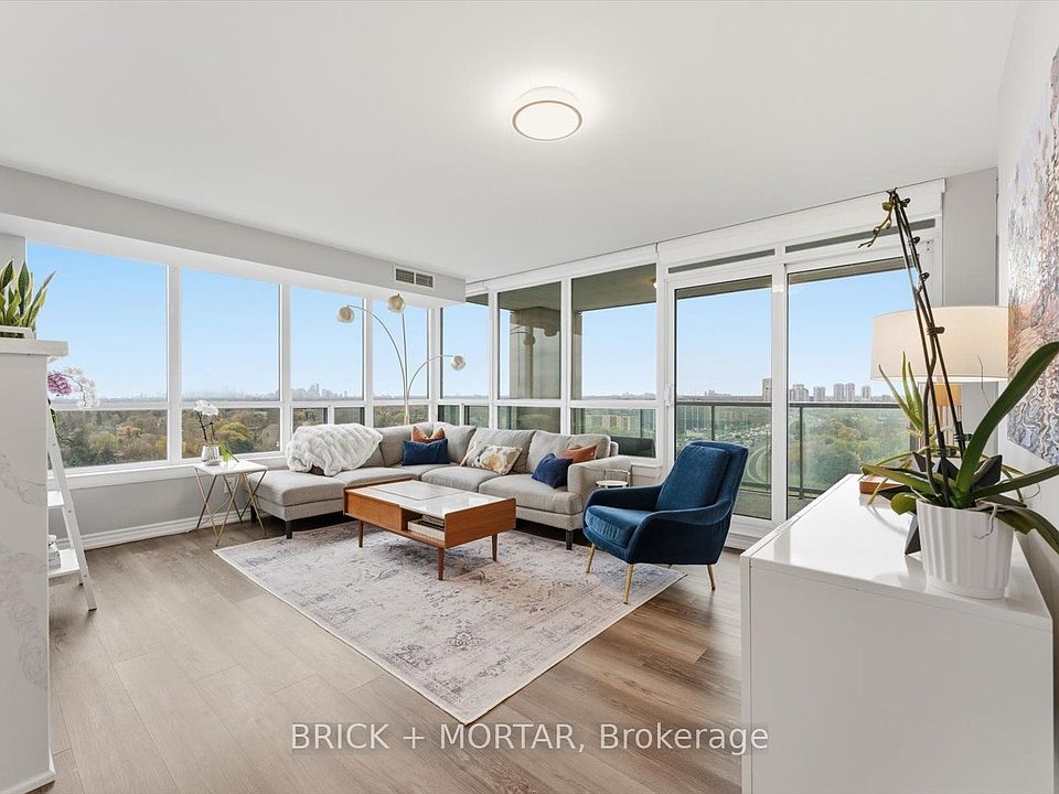 This Is Your Chance To Own A Rarely Offered "10 Stack" Suite At Daniels' Landmark Empire Condos. Enjoy An Incredible Southwest Corner Exposure With Wraparound Windows And Uninterrupted Panoramic Views, Flooding The Suite With Natural Light. Thoughtful Split 2-Bedroom Layout, A Bright Eat-In Kitchen, An Expansive Open-Concept Living Room With Fireplace, And Nearly 1,000 Sq. Ft. Of Living Space. Professionally Renovated With Commercial-Grade Vinyl Flooring, New Kitchen Cabinet Doors, Quartz Countertops And Modern 12" x 24" Porcelain Tile In Both Bathrooms, New Shower In The Main Bathroom, And More! Added Bonus With Two Parking Spots - Including One Extra-Wide - Plus A Locker. Meticulously Maintained, Owner-Occupied, And Located In A Well-Managed Building With A Very Healthy Reserve Fund. The Empire Offers A Full Suite Of Amenities: Indoor Pool & Hot Tub, Sauna, Gym, Party Room With Outdoor Terrace, Theatre Room, Billiards & Ping Pong, Golf Simulator, 24-Hour Concierge, Library, And Resident Electric Vehicle Charging Stations. Unbeatable Convenience With Walkable Amenities At Your Doorstep. Just 2 Minutes To Bayview Subway Station And 5 Minutes To Bayview Village Mall (Loblaws, LCBO, Starbucks, Dining, Shopping & More). Quick Access To Highway 401, IKEA, Canadian Tire, MEC, And The Entire Sheppard Corridor.