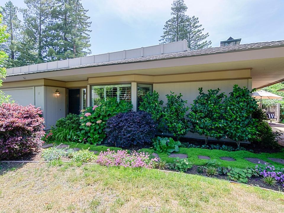 Prime interior location in Creekside Oaks overlooking greenbelt and water feature. Comfortably elegant remodel with quality, custom features throughout. Shuttered dual-paned windows and sliding glass doors lead to a private flagstone-finished patio. Beautiful granite and cabinetry in cook's delight kitchen with breakfast bay. Skylights welcome an abundance of natural light. Inviting atrium accented with lovely plantings provide perfect setting for morning coffee and relaxation. Jetted tub in master suite that also offers a private patio. 2 car attached garage. Highly desired gated complex with 2 community pools, mature trees, rolling lawns. Close proximity to Village amenities. Move in and enjoy the luxury!
