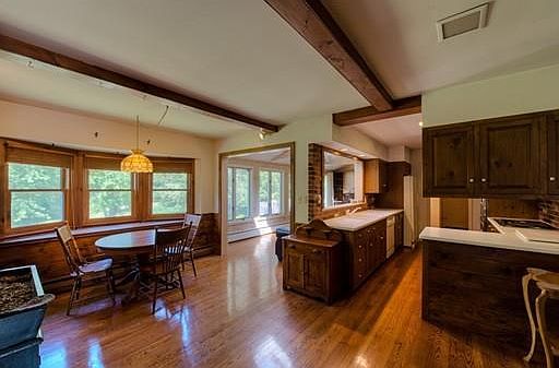 - Kit Dscrp: Pantry, Dining Area, Flooring - Hardwood, Countertops - Stone/Granite/Solid, Window(s) - Bay/Bow/Box, Exterior Access