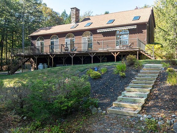 Live on the lake. The best of both worlds! Private luxury home on the shore of Big Sebago. Soaring vaulted ceilings, 2 story stone fireplace, amazing water views, expansive deck off of kitchen, living room and formal dining room. Huge master suite has been divided into two bedrooms but could be returned to original size.. All of this in a peaceful, protected cove. Perfect for paddle boarding and kayaking. Keep your large boat on the newer docking system. No need to moor it. Meticulously maintained and updated. Rock walls and spectacular perennial gardens. For the discriminating buyer who wants Big Sebago.2bed septic/4bed design done for expansion