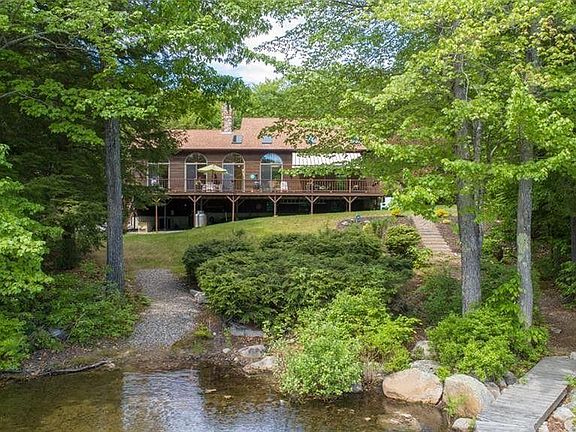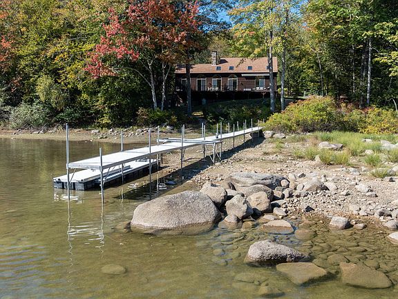 Live on the lake. The best of both worlds! Private luxury home on the shore of Big Sebago. Soaring vaulted ceilings, 2 story stone fireplace, amazing water views, expansive deck off of kitchen, living room and formal dining room. Huge master suite has been divided into two bedrooms but could be returned to original size.. All of this in a peaceful, protected cove. Perfect for paddle boarding and kayaking. Keep your large boat on the newer docking system. No need to moor it. Meticulously maintained and updated. Rock walls and spectacular perennial gardens. For the discriminating buyer who wants Big Sebago.2bed septic/4bed design done for expansion