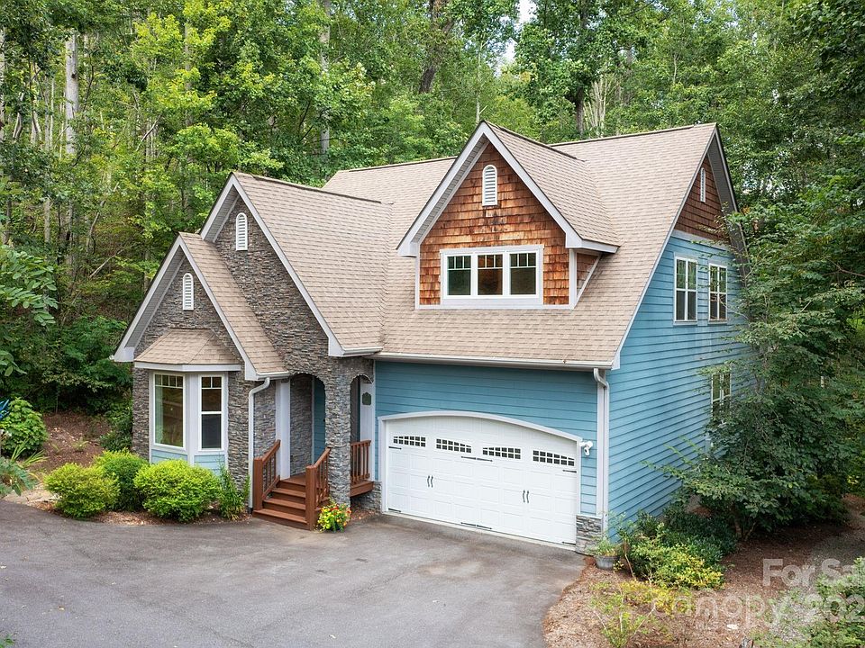 Welcome to 17 Bohemian Lane, a perfect escape from the everyday. A true wooded oasis, this spacious home is situated on 1.72 acres at the end of a private lane, offering plenty of room to work, play, and create. Step inside this move-in ready home and experience the open, flowing floor plan with cathedral ceilings and large windows that fill the space with natural light. Enjoy entertaining in the chef-inspired kitchen or unwinding after a long day in the private, retreat-like primary suite on the main floor. Upstairs you’ll find two bedrooms and a large bonus room that is ideal for movie nights. Not to be missed- the detached two-story studio provides incredible bonus space and is perfect as an artist's studio, a private home office, home gym, or play space. Relax on the covered back porch and enjoy the soothing sounds of birds and a babbling waterfall while taking in the lovely landscape. Just minutes to shopping and 20 minutes to Downtown Asheville. Private Lane- NO Drive-bys.