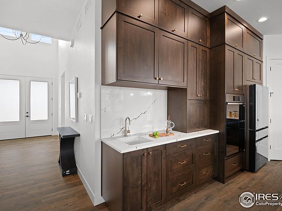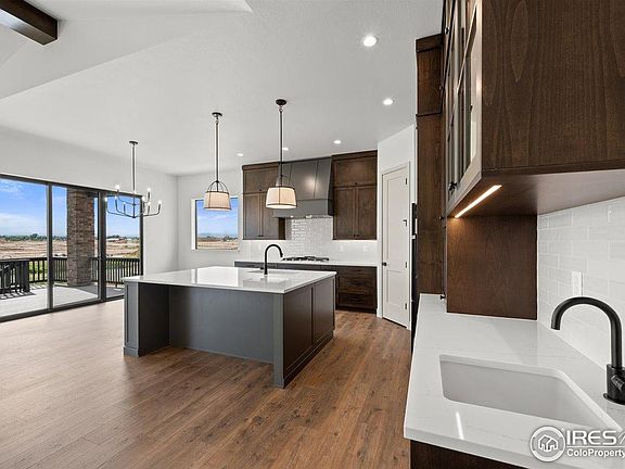 This thoughtfully designed ranch-style home sits on a premium garden-level lot in the desirable Greenspire at Windsor Lake community. Enjoy water and foothill views from a peaceful canal that flows directly into Windsor Lake. From morning coffee on the covered deck to evening walks at sunset around the lake, the setting makes it easy to slow down and savor the moment. With walkability to downtown, Windsor Lake, and its community events, you will feel connected to both nature and neighbors. A spacious 3-car plus half-tandem garage provides plenty of room for storage, hobbies, and all the gear that comes with Colorado living. Double front doors open to a striking 16-foot entryway where vaulted ceilings, exposed beams, and expansive windows fill the home with light. The open layout was designed for both gatherings and quiet family time. The great room offers a comfortable place to unwind with a stone-wrapped fireplace and custom floor-to-ceiling built-in bookshelves that add warmth and character. The gourmet kitchen is a true centerpiece featuring rich brown cabinetry, quartz countertops, gold fixtures, an oversized island, and a secondary prep sink. It is equal parts functional and stylish, perfect for holidays, dinner parties, or casual weeknight meals. The primary suite is tucked away for privacy and includes a spa-like bath with dual vanities, a freestanding soaking tub, and a walk-in shower. It is a quiet retreat designed for relaxation at the end of the day. The finished basement benefits from the garden-level design, filling the space with natural light. It includes a large recreation room, two bedrooms, a full bath, and a wet bar that makes entertaining easy. A dedicated theater room is ready for movie nights, game day, or streaming your favorite shows. Landscaping and fencing are also included, making the home complete inside and out. Schedule your private showing today and discover all that Greenspire at Windsor Lake has to offer.