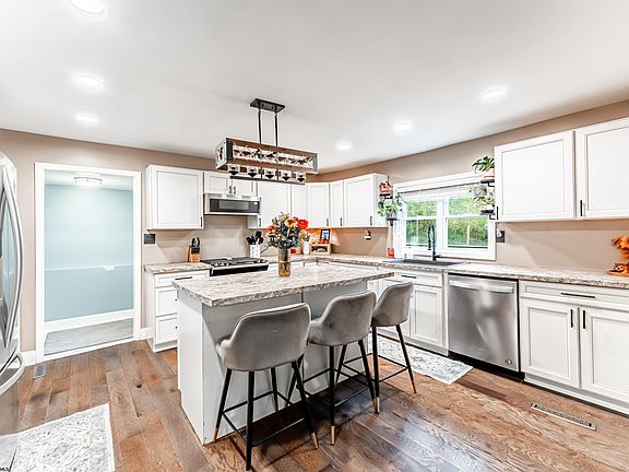 Large deckGenerous fenced in yardBright kitchenBathroom with double sinks