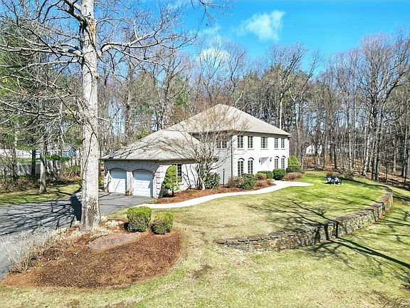 MOVE-IN READY Colonial that exudes luxury and sophistication at every turn! Well-maintained 4710 sq ft sitting on over 2 acres!! Oversized Bedrooms with Huge Walk-In Closets and an open floor plan! The large, renovated kitchen opens to an amazing two-story Great Room with a gas fireplace and sliding doors leading to a beautiful patio. Gleaming hardwood floors and elegant finishes throughout! Large Study provides work-from-home privacy. Formal dining room for special events! Spacious 1st (and 2nd floor) primary bedrooms both have ensuite bathrooms. The renovated 2nd floor primary bedroom has a Custom-Built bathroom, walk-in closet, and a tandem room offering additional living options. Large finished basement for entertainment! Surrounded by beautiful landscaping, this exquisite home offers a perfect blend of elegance, privacy, and comfort in one of the area’s most desirable towns. Close to all area amenities and just minutes to the Mass Pike!