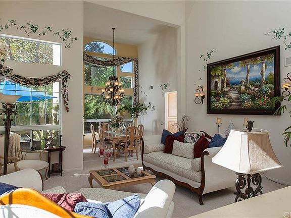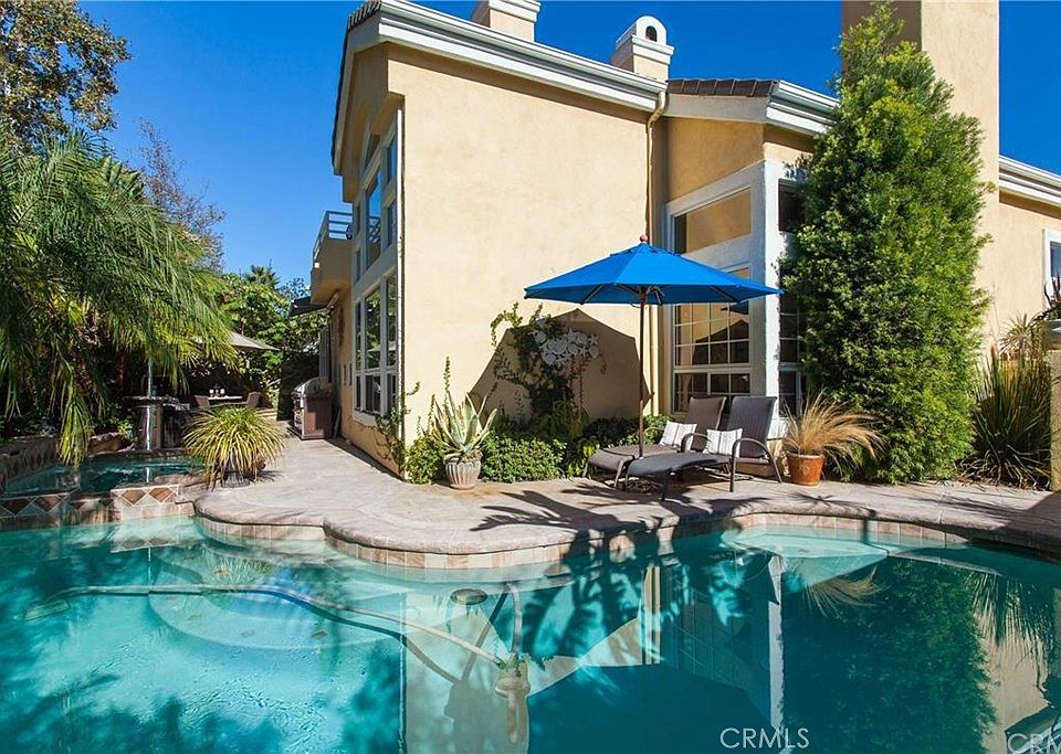 Welcome to beautiful pool house at the exclusive guard gated community of Dove Canyon! Featuring 4 bedrooms 4 bathrooms and a corner lot location with over 7,000 square feet. A down stairs bedroom perfect for the in laws, office or additional living space for that growing family. With an open floor plan throughout the main floor, you can't wait to have guests over to entertain especially in the oversized kitchen. Plenty of counter space showcasing granite counters, upgraded appliances and a panoramic view of the backyard. Step inside and you'll be enveloped by the high ceilings filled with tons of natural light showcasing the neutral paint in the formal living and dining rooms. Upstairs you'll find a huge master bedroom boasting vaulted ceilings, fireplace and additional seating area too. The 2nd and 3rd bedrooms both offer their own private en-suite and panoramic views of the Saddleback mountains. Kids ready for summer and looking for a place to have fun? Check out this custom pool, fireplace and wrap around back yard ready for the summer BBQ. Offering everything that Dove Canyon has to offer including community pool and spa, this home has it all!.