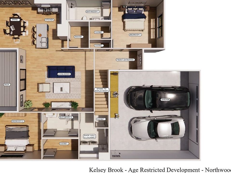 Discover the welcoming Kelsey Brook senior community in Northwood, where your dream home awaits! This stunning new walk-out basement unit in an ENERGY STAR-certified neighborhood offers breathtaking views and comes complete with a 2-car garage with room above and full basement for all your extra belongings.  Step inside your new home and be greeted by a spacious, inviting one-floor living space designed for ultimate comfort and convenience. With southern exposure, your private deck is bathed in sunlight, making it the perfect spot to enjoy your morning coffee or an evening glass of wine. Imagine relaxing in your very own screened-in porch, savoring the beauty of your surroundings year-round.  The open-concept design is ideal for entertaining friends and family, and you'll love the two generous bedrooms that provide ample space for relaxation and privacy. With your own private driveway, parking will always be a breeze.  Customize your home with optional upgrades, including a finished basement, additional living space over the garage, and a screened-in deck. Choose from a variety of high-quality materials to make your home truly your own.  The beautiful clubhouse, featuring a fieldstone fireplace and kitchen, is perfect for social gatherings and classes with neighbors. Northwood offers miles of scenic walking trails, local shopping just minutes away, and numerous community events to keep you engaged and connected.  Experience the charm and tranquility of Northwood, an