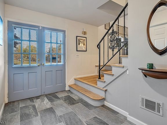 Welcome to this spacious 4 bedroom, 3 full bath home in one of Pine Brook's most desirable and walkable neighborhoods. The first floor features a welcoming entryway with modern tile, an updated full bath, a comfortable family room, and an eat-in kitchen. The kitchen includes stainless steel appliances, ample cabinet space, and an oversized refrigerator and freezer, opening to the dining room perfect for entertaining. The large living room offers high ceilings, hardwood floors, and front-to-back windows that fill the space with natural light. A bright sunroom off the kitchen provides a flexible area for relaxing or working from home. Upstairs, all bedrooms feature hardwood floors. The primary bedroom offers a walk-in closet and full bath with a stall shower. Enjoy excellent curb appeal with vinyl siding, a well-maintained driveway, and welcoming front walkway. The roof was replaced approximately five years ago, and the full basement has been waterproofed with dual sump pumps for added peace of mind. The unfinished basement offers high ceilings and great storage. A laundry and storage room off the garage provides convenient access to the kitchen. The level backyard is perfect for outdoor enjoyment. Peaceful property in a prime location close to major highways, restaurants, and everyday conveniences. All public utilities. Lender may require flood insurance.