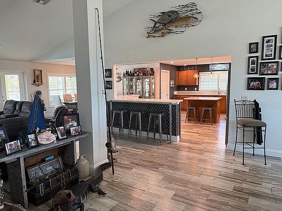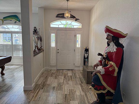 The open-concept floor plan includes a large kitchen with quartz countertops and a walk-in pantry, a separate dining area, and bonus space perfect for a home office or playroom. Step outside to the stunning lanai and pool area, featuring a partially covered space for shade and relaxation. The self-cleaning pool is a true highlight with its waterfall feature, jacuzzi, LED lighting, newer heater, and built-in table with seating, making it an entertainer’s dream.