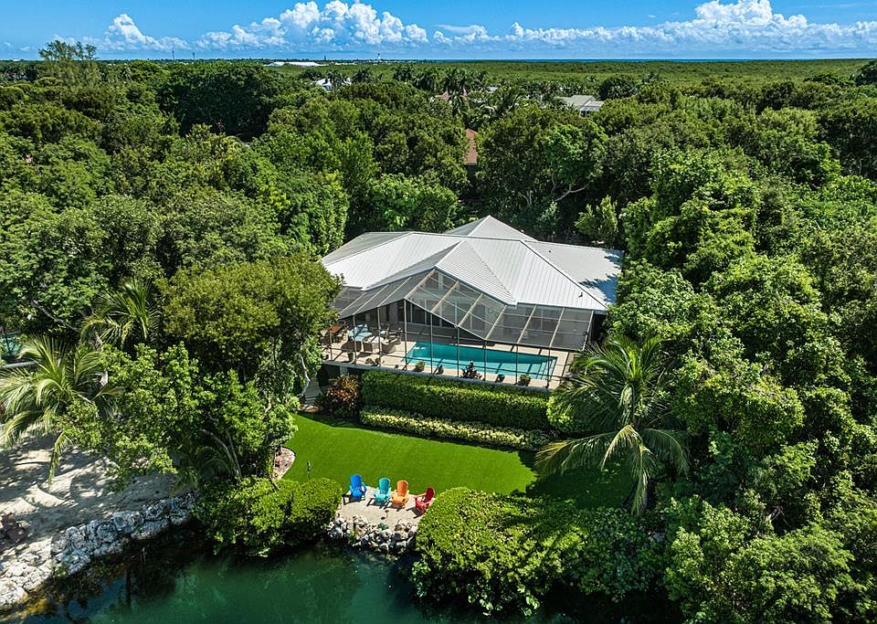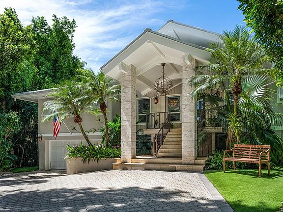 Living is tranquil and comfortable in this impressive residence with a beautiful lake view. Completely renovated and decorated in 2023, this home features four bedrooms and three bathrooms. The open floor plan exudes warmth with a sleek and stylish large gourmet kitchen that flows through to the dining and living areas. The expansive home opens up to a spacious patio terrace with a pool overlooking the lake and golf course. The master bedroom with walk-in closets and large en-suite bathroom, ensures privacy while offering sunset views on the lake. One guest bedroom serves as a den w an en-suite bath, another as an office with a custom built-in Murphy bed, and a third has a king bed. Custom built-ins throughout the home elevate the dcor and create efficient and gorgeous spaces. The gigantic space under the home functions well. And, the lush lighted landscaping including well-done brand-new turf and keystone make this home an ideal tropical paradise for those with discerning taste. Soaring ceilings and panoramic sunsets abound within this enchanting home.