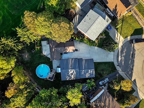Beautifully updated home backing onto Macassa Park! Features newly renovated bathrooms (incl. oversized shower), bright open-concept layout, and a 21ft above-ground pool (2020). The large brushed concrete driveway fits up to 6 cars and leads to an impressive L-shaped detached garage/workshop (2 sections, each 14x20) with 13ft ceilings, natural gas heat, 100amp service, car hoist, spray foam insulation, and metal roof (2015). Windows replaced in 2018. Move-in ready with exceptional indoor-outdoor living!