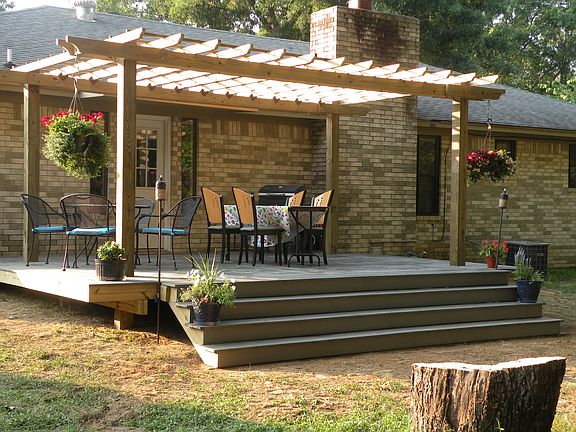 Remodeled brick house with open floor plan has 3 bedrooms, 2 baths & office off living room. The large living room has a gas log FP & crown modeling. Kitchen has black updated appliances, updated solid surface countertops & sink with tile backsplash. Master bath has new toilet, sink & vanity. New roof, storage building, fenced in back yard, newer pergola with large deck for entertaining. Shaded lot with mature trees. 2 car garage with storage & new garage doors & opener. Appointment required, see remarks.