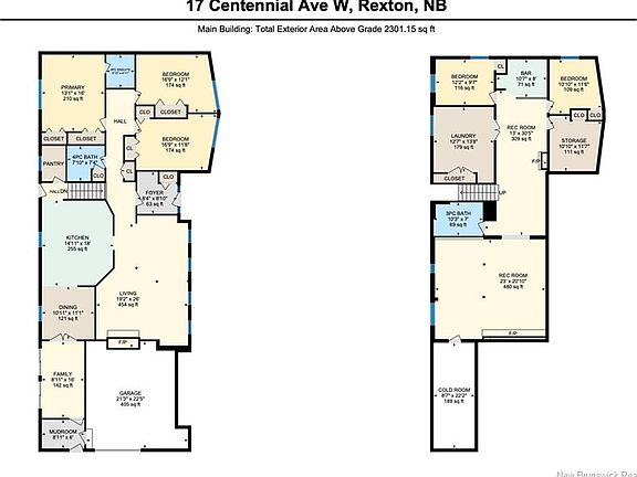 - Finished area above ground: 2,301