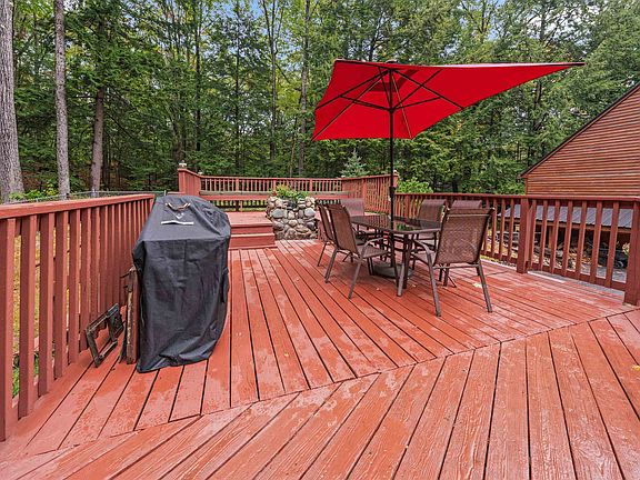 This beautiful cape on almost an acre, is move in ready! Just in time to enjoy the Fall foliage from the huge 16x18 multilevel deck! Step inside to the beautifully appointed kitchen with newer appliances, new flooring and freshly painted walls! Large dining and living room give you ample space to entertain for the holidays! The bedroom/den with full bath complete the first level. Upstairs host 2 large bedrooms and another full bath. Lots of closets and build ins provide plenty of storage. The basement is mostly finished with a beautiful bar, cozy woodstove and finished laundry room. Oversized 2+ car garage has a loft above for storage or finishing. Easy access to Pillsbury Lake, 67 acres of summer fun! Amenities include a community playground, basketball court and athletic field, clubhouse and a 316-acre hunting preserve! And NO HOA! Mature landscaping partly fenced yard, private well (with new pump and pressure tank), and new furnace covers all the bases! Showings begin at Open house Sat 9/27/25 12-2. This one won't last long!