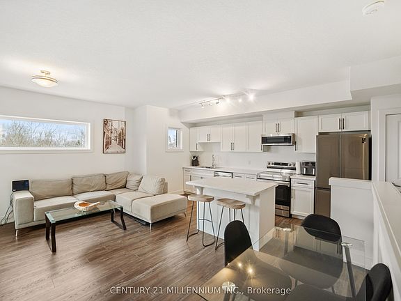 Welcome to this beautifully upgraded 1,251 sq ft Collingwood model stacked townhouse, built in 2021. Offering two bedrooms, three bathrooms, and a convenient location, this home blends modern comfort with timeless elegance. As you enter the unit, you're greeted by a warm and inviting open-concept main floor, enhanced by luxury laminate flooring and filled with natural light. The spacious living area flows seamlessly, creating a versatile space for relaxing or entertaining. Beautiful white kitchen with centre island and stainless steel appliances. A powder room on the main floor adds convenience for guests. Upstairs, the second level features two generously sized bedrooms. The primary suite is a private retreat with a walk-in closet and a luxurious four-piece ensuite. The main bathroom provides additional comfort, while a main-floor laundry room enhances practicality. Carpeted staircases add warmth and a cozy touch to the home. Step outside to your private balcony, where you can enjoy peaceful views of the surrounding treesan ideal spot for your morning coffee or evening relaxation. The property also includes one owned parking space for added convenience. With its thoughtful design, elegant finishes, and prime location, this townhouse is a rare opportunity to enjoy modern living in a beautifully crafted home.