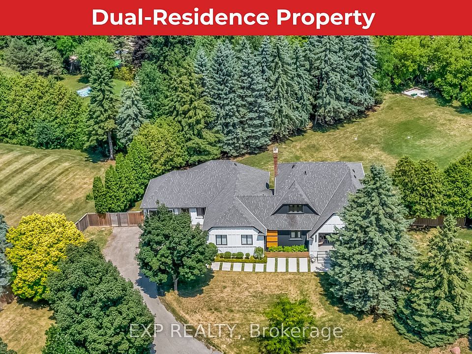 Tucked away on a tranquil cul-de-sac in the heart of Nobleton, this exceptional property offers a rare opportunity with two distinct residences: a highly renovated two-storey main home and a private, attached bungalow. Its perfect for multi-generational living or income potential! The main home's main and 2nd level were completely renovated. It exudes sophistication with a high-end renovated kitchen featuring a 48" gas stove, warming drawer, large island, custom banquette seating, & spacious pantry. Elegant wide-plank hardwood, flat ceilings, pot lights flow throughout complemented by new staircase with glass railings. All bedrooms boast custom cabinetry, while the primary suite offers a luxurious 5-piece ensuite bath with a large soaker tub, glass shower, dual vanities, and a skylight. A large mudroom and renovated laundry room enhance daily function. Currently configured with three bedrooms and an immense custom walk-in closet, it can easily convert back to a fourth bedroom. The main home's basement is partially finished, offering further potential to tailor to suit your needs. The attached, self-contained bungalow provides privacy and independence, complete with its own garage, furnace, A/C, water heater, and an unfinished basement ideal for aging parents, adult children, extended family or rental income.The homes exterior was refinished in 2023 with modern stucco and a striking custom dual front-entry door. $500,000 spent in total interior/exterior upgrades including new sewer system, roof, eaves, garage doors etc...Too Many To List! Situated on a large, pool-sized + acre lot with a 9+ car driveway and walk-up basement stairs, this Nobleton residence offers a private oasis in a mature, sought-after community within King Township. This very rare offering combines luxurious living with unparalleled versatility!