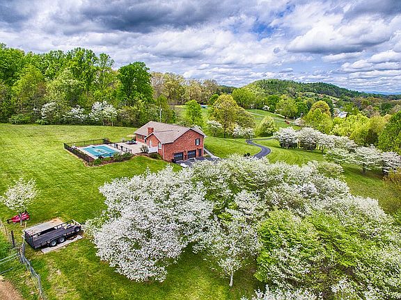 Drive up the driveway to the house on the hill and enjoy your privacy. This home backs up to a farm in the rear and woods on either side. This all brick home features Hardwood Floors and Trey Ceiling in the Open Living/Dining room with updated stone & tile at the fireplace. Large eat in kitchen with built in hutch features recessed lighting, stainless appliances, and new 30 year commercial vinyl flooring with the look of weathered hardwood. Spacious Master en-suite with sitting area has direct access to the patio and pool area. The updated master bath features new tile flooring, new double vanity with granite top and more. The hall bath has updated tile flooring, new vanity and step in tiled shower. The basement level features a family room and an office with closet plus a 3rd bath with step in shower. The home has freshly painted interior walls, new 4" baseboards on the main level, new ceiling fans on the main level, and new plush carpeting in the bedrooms. The renovations were for the owners enjoyment not to flip this home. Step outside to a large patio with in ground pool. New aluminum fencing encloses the pool and a new cover with pump added this winter. The garage is a man's world. It is almost 2 cars deep with offsets on either side for a workshop or the Harley. The owners bought this one because of the sheep on the farm in back. The privacy and views just sold them on the house. The distant mountain views and the huge sky are beautiful. Plus there are over 100 dogwood trees. The owners have more in this home than they can recoup so enjoy their upgrades. For sale by Owner/Agent .