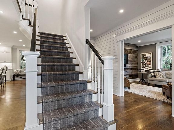 2017 Custom build loaded with upgrades in desired neighborhood. This home has 4 spacious floors of living. Open first floor flows easily from gracious foyer to formal living and dining spaces. The chef's kitchen is the heart of the home with high end appliances and timeless finishes. Large center island offers ample food prep and eat in space. Kitchen is open to the family room with built in beverage center. Dream mudroom has radiant heated floors and concealed storage for clutter free look. Second floor has master with his and her closets. Elegant master bath has his and her sinks, radiant heated floor and glass enclosed shower. Bedroom 2 has an open airy feel with vaulted ceilings and whimsical loft, shares a jack and jill style bath with bedroom 3, Bed 4, full bath and laundry also on fl 2. 3rd floor has two additional generous sized bedrooms and full bath. Home gym, full bath, option for 7th bed or office and childrens playroom complete the basement.