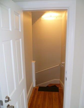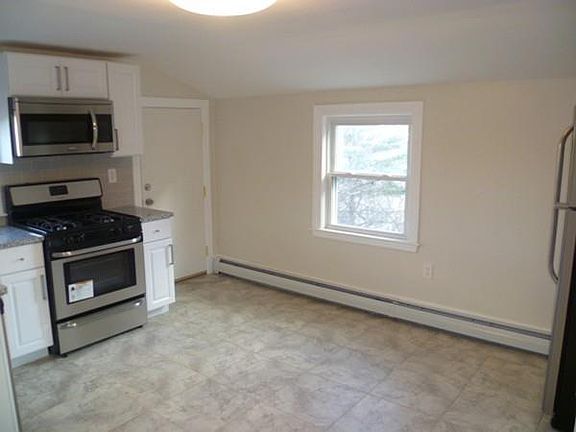 Recently renovated, 3 room, 1 bedroom, 1 bath deleaded apartment on top floor of three family home. Contemporary EIK with modern kitchen cabinets, granite countertops, Subway tile backsplash and Energy Efficient stainless steel appliances. Other updates include beautifully tiled bathroom, all windows and light fixtures replaced, refinished hardwood floors and High Efficiency gas heat and water "On Demand" units. Stackable washer/dryer in unit. Excellent location on a lovely tree lined street in Maplewood area. Plenty of on-street parking available. Public transportation at end of street. Take a bus to the Malden T, approx.1 Mile from the Orange Line at City Hall or minutes to Boston or Route 1. Won't Last long! Rent includes water and lawn maintenance. Great credit and references a must!