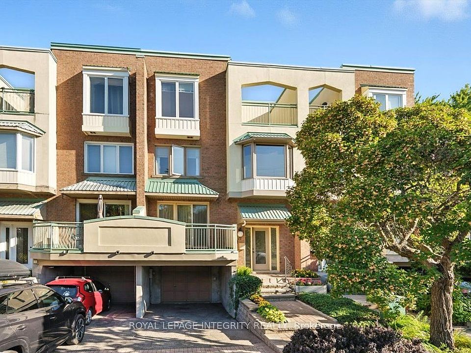 Welcome to 17 Columbus Avenue - a 3 bedroom + den, 3 bathroom freehold townhome tucked off North River Road, just minutes from Ottawa's best amenities, highway 417, downtown core/ByWard Market, cultural landmarks, the Rideau Sports Center & Tennis Club, the Adawe Crossing Bridge, and scenic pathways. This one-of-a-kind home offers the perfect balance of comfort and convenience. The driveway fitting 2 cars gives access to the attached garage and a pathway leads you to the front entrance, where a spacious foyer with powder room access sets the tone. Just a few steps up, the sun-filled living room features gleaming hardwood floors, patio doors opening to a walk-out deck and a double-sided wood-burning fireplace shared with the dining room bathed in natural light from the overhead skylight. The kitchen offers a practical layout with white cabinetry, tile backsplash, and new LED lighting. On the second level, you'll find two generous bedrooms, a full bathroom, and a versatile den with custom floor to ceiling built-in wooden library/office - perfect as a home office, reading nook, or easily converted into a 4th bedroom. A dedicated laundry room with a large storage closet completes this level. The top floor is reserved for the private primary retreat, complete with a 5-piece ensuite, spacious walk-in closet, and a sunny terrace with retractable awning. The basement provides direct garage access, a cedar closet, and a workshop/storage area. This freehold townhome is truly unlike any other and location can't be beat - come visit today!
