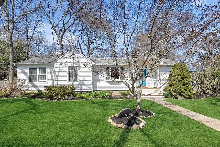Enjoy a short stroll to the water from this inviting and sunny open ranch in the Miramar Beach community! Situated on a quiet block, this home features great curb appeal and an open concept living space. The sunny living room with bay window opens to the large EIK with ample storage space, updated appliances including a gas stove, and a large breakfast bar with seating. The kitchen flows into a large dining area with sliders to a spacious deck. Beyond the dining area is a family room with multiple windows and a brick fireplace with stove insert and outside entrance to the yard. The home features a large master bedroom with extra room for a work or seating area and multiple windows that allow in an abundance of light. Two additional bedrooms with ceiling fans complete the living space. There is ample storage space throughout the home with multiple closets and an attic. The basement affords additional storage space and has an outside entrance to the yard. The oversized driveway can fit mulitiple vehicles. Enjoy warm days on your deck in the yard and make use of the space for your family memories. A few short blocks from the home takes you to a beach with a playground and a dock for crabbing. Don't miss out!