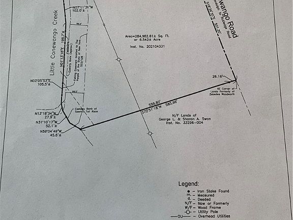 Are you looking for a spot to park the RV for the summer months. Maybe build a home. This 6.5 acre lot has a high and dry side to the North. With electric, water and gas all available at the road it would be a easy spot. The Little Conewango Creek follows the back property line where you could hunt and fish. A little bit of clearing and elbow grease and you are all set. Seller is providing existing survey completed within the past few months. Title Search with Warranty Deed also provided. A hop skip and a jump to Cardinal Hills Golf Couse, close to I-86 for easy access to Allegany State Park, Onoville Marina, Seneca Allegany Casino, Holiday Valley Ski Resort and Chautauqua Institution are just a quick drive.
