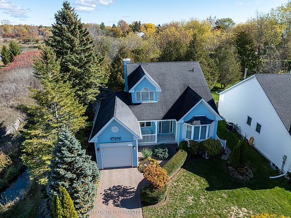 This unique bungaloft in Loyalist Lifestyle Community offers a charming, character-filled home nestled on a picturesque Creekside lot in Bath. Built originally by developers for personal use, it combines comfort with distinctive features. Main floor features a functional kitchen with a breakfast room, a formal dining area overlooking a sunken, light-filled living room with a cozy natural gas fireplace, and a spacious primary bedroom with an updated ensuite bath. Additionally, there's a guest bedroom and a main bathroom. Upstairs, the loft and full bathroom can serve as a third bedroom or versatile living space. Enjoy outdoor living on a large deck with a pergola overlooking a beautifully landscaped yard, where the sounds of the creek create a peaceful atmosphere. Residents have access to a full-service marina, championship golf, tennis and pickleball courts, scenic trails, and a charming selection of shops, cafés, and restaurants. Whether retiring, seeking community, or simply relaxing, the Village of Bath offers a wonderful lifestyle.