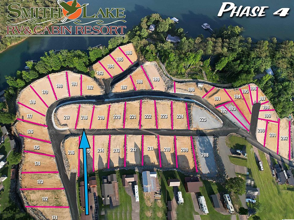 Welcome to the Premier RV Resort on Smith Lake! Experience luxury RV living at its finest in this beautiful lakeside gated resort featuring three scenic ponds, a pickle ball court, a sparkling pool, private access to Smith Lake, and so much more. This is a new lot in Phase 4 of the resort. Close to the pool, club house, boat ramp, boat docks, and more. These lots are ready for your RV and your home. Outside, enjoy a large stamped concrete RV pad, a covered patio ideal for entertaining and BBQs, and direct private access to Smith Lake. Additional resort amenities include trailer storage, beautifully maintained grounds, and a welcoming community atmosphere. Whether you're relaxing by the water or enjoying a game of pickle ball, this is truly the ultimate RV resort experience on Smith Lake.
