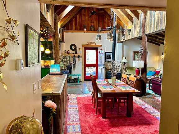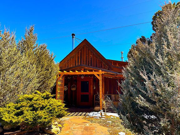 Spectacular view of the Carson National Forest from this beautiful 1,550 Sq. Ft. 2 Story Cabin style home on 14.40 fenced in acres located near the community of Vallecitos and approximately 20 minutes from Ojo Caliente. Enter the home from the portal and be awed by the great room with vaulted ceiling. Two bedrooms, 2 1/2 baths, Sunroom overlooking fields and forest where elk and deer graze. Custom built attached cabinets, radiant floor heat and a Vermont Casting Wood Stove. Insulated Workshop with Storage or convert into a guesthouse. Agricultural garage with 4 bays with adjacent tool and wood shed. Greenhouse with water hydrant and sink. An unfinished 2200 sq. ft. adobe structure. Privacy fence, landscapedwith flower beds and mature trees. Come see, you will not want to leave.