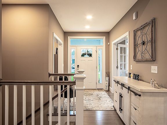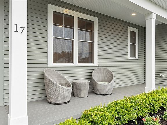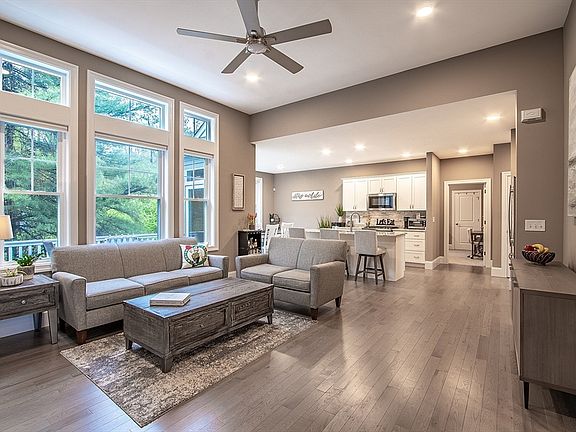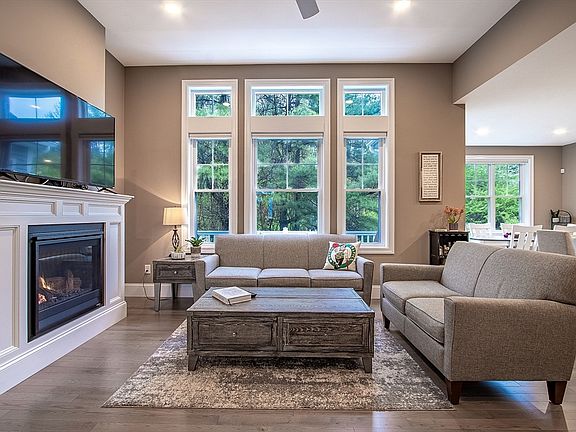 Enjoy the ease of single-level living in this beautifully maintained stand-alone condo, privately set at the end of a quiet cul-de-sac and overlooking peaceful conservation land. With 1,708 sq ft on the main level and an additional 1,708 sq ft in the unfinished walkout lower level, this home offers comfort today with the opportunity to expand tomorrow. The open-concept kitchen features a breakfast bar and sunny breakfast nook, seamlessly flowing into the spacious LR with a cozy gas fireplace—perfect for everyday living or entertaining. The floor plan includes 3 bedrooms, including a private primary suite with en suite bath. A dedicated home office offers convenience for remote work. Step outside to enjoy the serene back deck, or relax on the welcoming front farmer's porch. Built in 2022 on a premium lot, this young condo is loaded with upgrades including radiant heat in the primary bath, automated blinds, and a custom paver patio. Welcome Home!